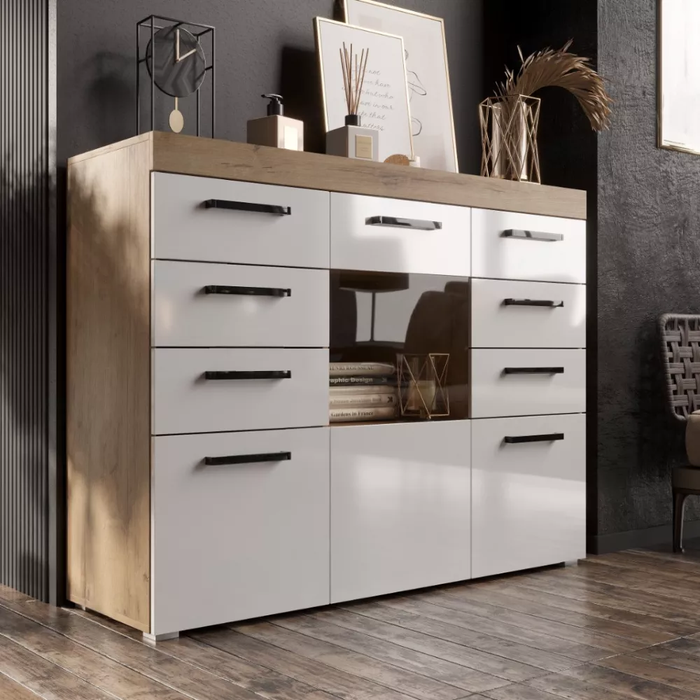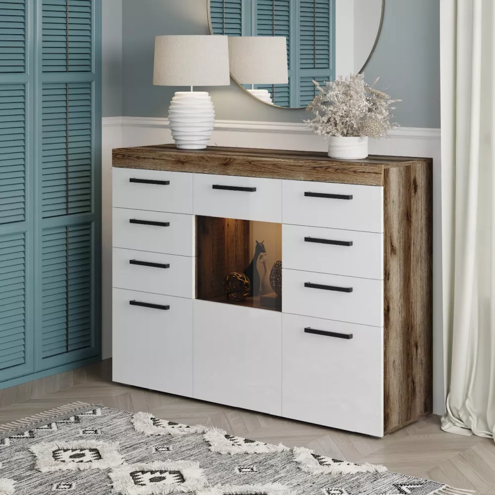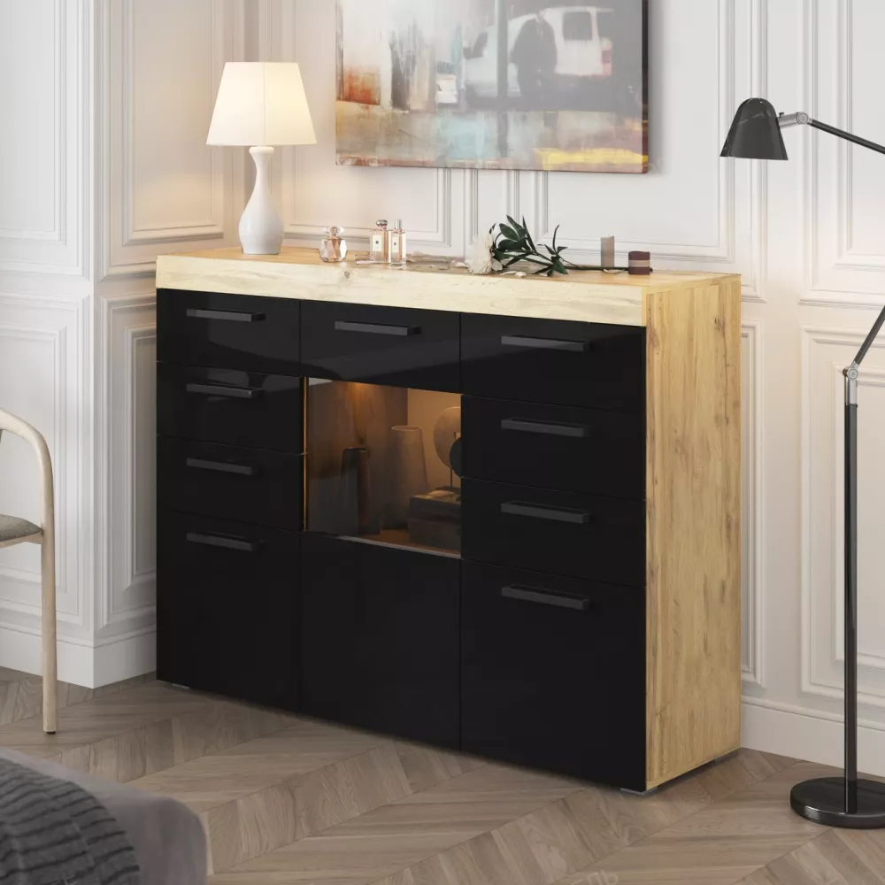 Размеры (Ш/В/Г) 1352х1028х400 Материал ЛДСП/ Стекло Цвет Корпус : Дуб Вотан. Дуб Делано. Цвет Фасадов : Чёрный Глянец. Белый Глянец.