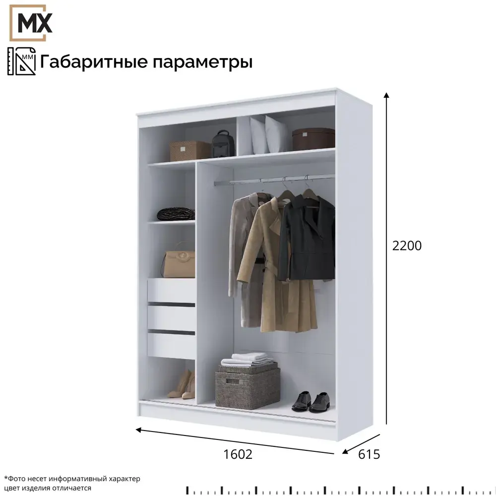 Шкаф-купе Гранд 1,6 м Цвет корпуса: Белый гладкий Фасад: Два Зеркало/Белый гладкий Габариты: 1600 (Ш) х 2200 (В) х 590 (Г) НОВАЯ МОДЕЛЬ