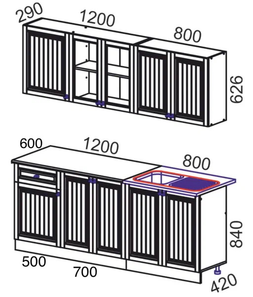 Цвет: Белый/ Дуб Вотан Материал фасада: ЛДСП / стекло Материал корпуса: ЛДСП Материал столешницы: ЛДСП Длина нижних шкафов: 200 см Длина верхних шкафов: 200 см Глубина нижних шкафов: 42 см Глубина верхних шкафов: 29 см Высота нижних шкафов: 84 см Высота верхних шкафов: 62.6 см Столешница 1200 идёт в комплекте .